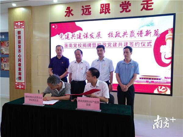 当天,惠州学院马克思主义学院党总支还与园区党委签订了党建共建协议。赵日兴表示,该校将调动马克思主义学院全体师生员工的积极性和创造性,学习借鉴惠南科技园在企业管理、创新人才培育、党组织建设等方面的成功做法与丰富经验,让广大师生得到实践锻炼,深化理论与实际的结合,提高师生分析研究解决社会实际问题的能力。