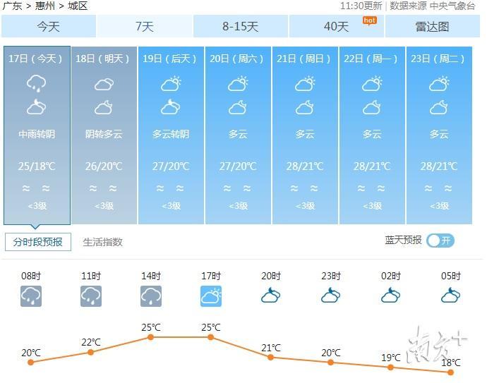 根据中央气象台官方网站消息,今天傍晚到夜间惠州城区雨势减弱,以多云天气为主。虽免了雨水滋扰,但雨后路面湿滑,山路崎岖,登山的市民务必听从现场工作人员指引,不到危险的地方去,安全第一。
