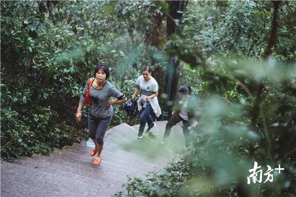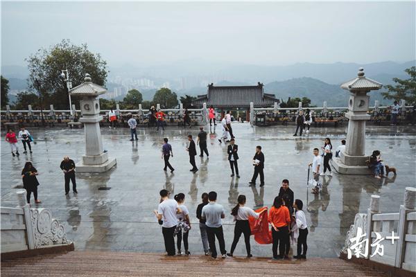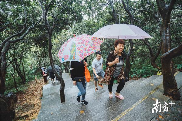 虽说“高处不胜寒”,不少人选择留在家中温一壶菊花酒,品一碟重阳糕,与家人闲话家常,但仍有不少市民在重阳当天登高。下午3时许,南方+记者在惠州市区高榜山看到,不少游人冒着绵绵细雨沿着崎岖的山路登山祈求好运。据悉,今年重阳节恰逢星期三工作日,或有部分市民计划夜间登山。