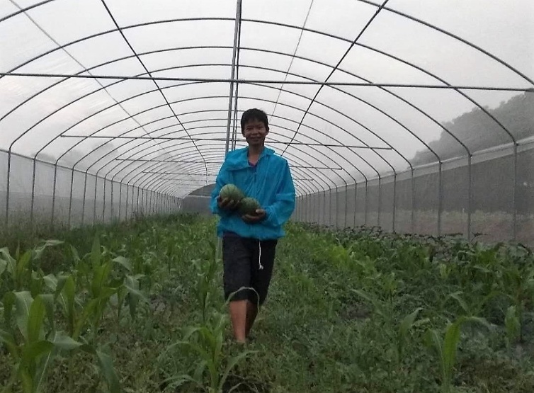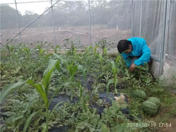 苦苦摸索了2年,走了很多弯路,通过上期新兴职业农民培训,他受益良多。目前农场小规模经营总面积30亩,主要是利用防虫棚研究黄肉西瓜种植,黄肉西瓜种子自行摸索培育和蔬菜种植。