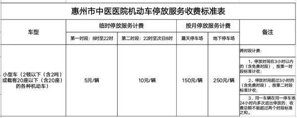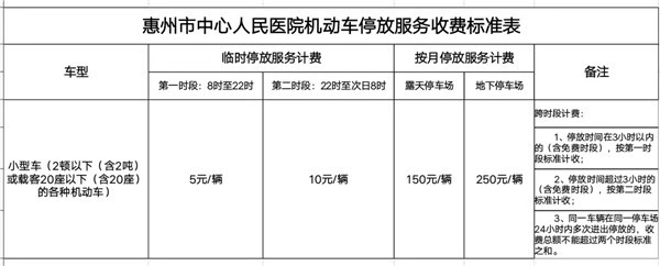近日,惠州市发改局对市中心人民医院、市中医医院停车收费有关问题作出批复,车辆停放时间不足60分钟给予免费,超过免费时间的则要按照规定标准收费。小汽车停放分为临时停放、按月停放两种方式收费。