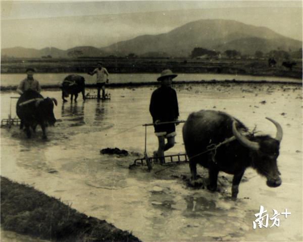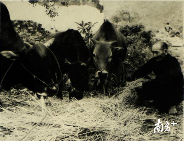 ▲1962年,惠阳区农民正在喂耕牛吃草