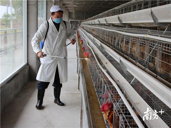 ▲2015年,广东金种农牧科技股份有限公司工作人员正在给鸡舍消毒