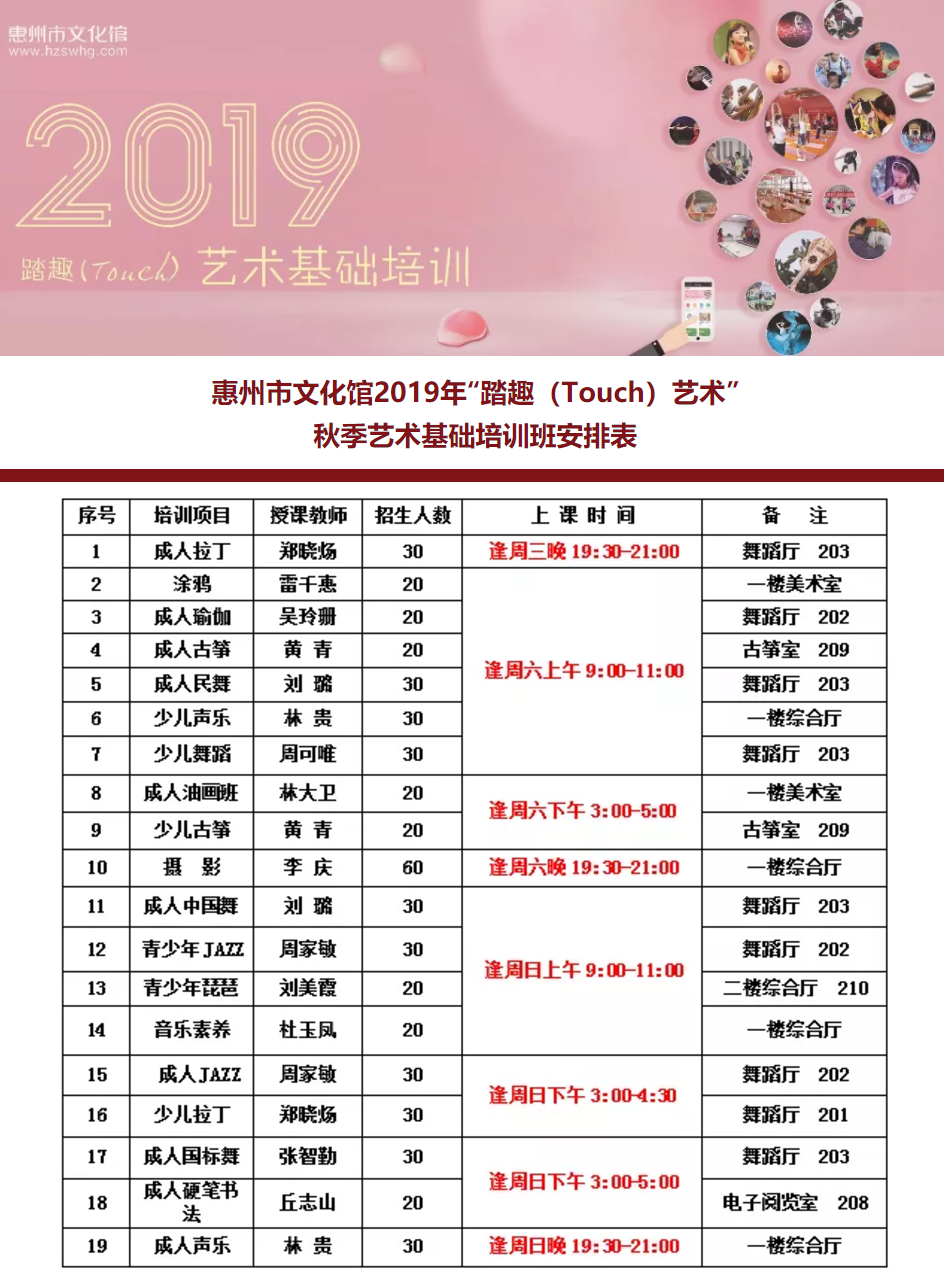 错过了暑期文艺培训班?别懊恼,惠州市文化馆即将推出“踏趣(Touch)艺术”秋季艺术基础培训班。
