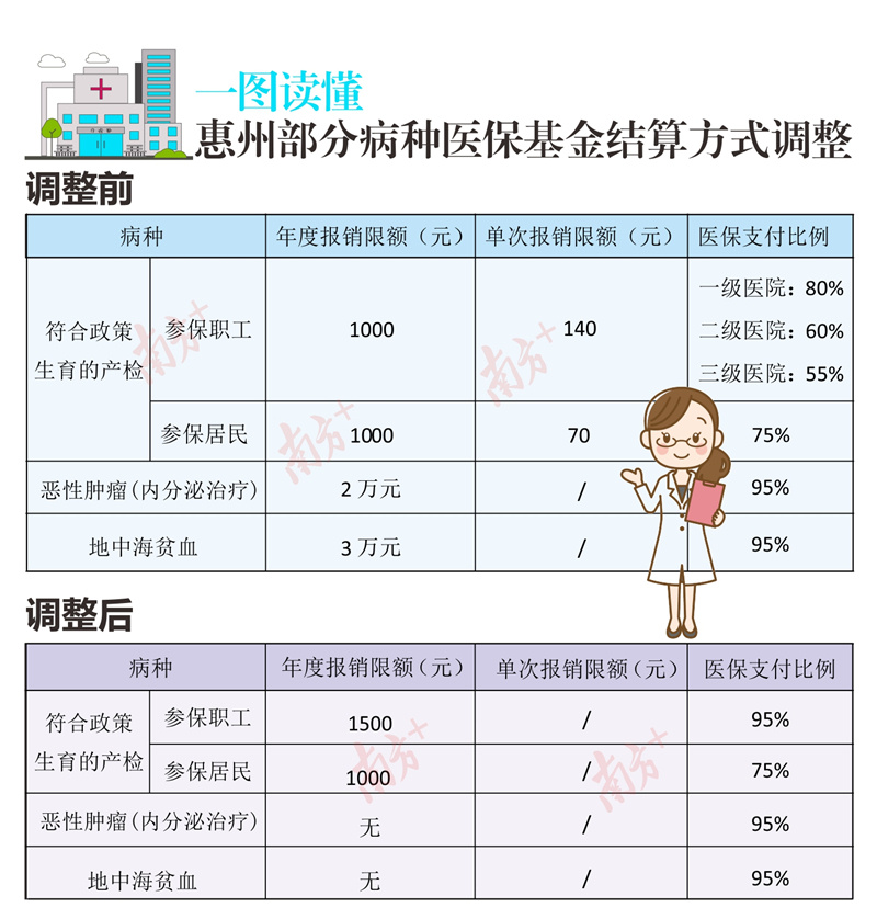 根据《征求意见稿》,惠州拟调整医保基金结算方式的病种包括符合政策生育的门诊产前检查、恶性肿瘤内分泌治疗和地中海贫血。这也是自市医保局成立以来,对原有社会基本医疗保险病种结算方式作出的首次调整。