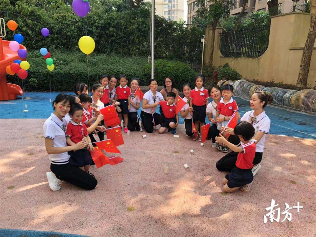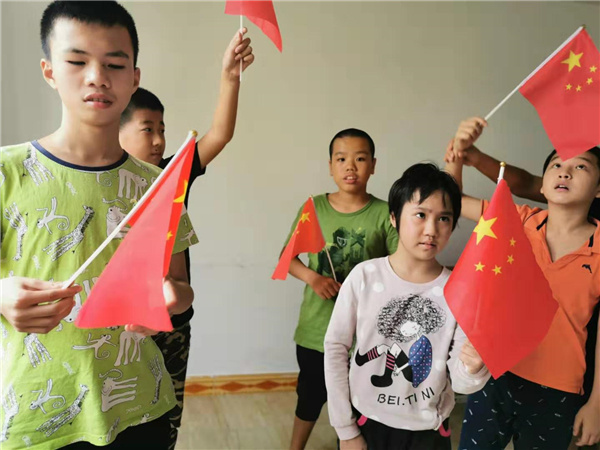惠州星星家园互助中心的自闭症孩子手持国旗,迎接国庆。