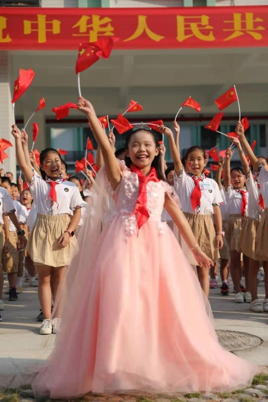 为庆祝新中国成立70周年,惠城区第四十二学校师生以不同的形式与国旗合影,深情祝福祖国。