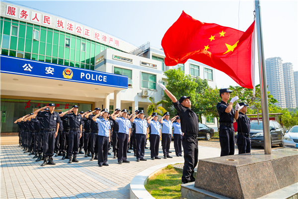 10月1日,大亚湾公安巡警大队举行升国旗仪式。