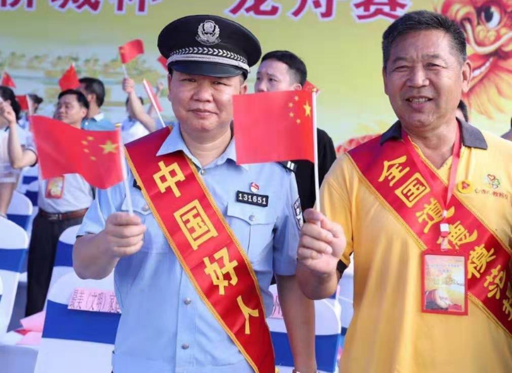 惠州东江义工队队长“东平哥”黄元盛(左)和公益救捞队队长赵喜昌(右)。