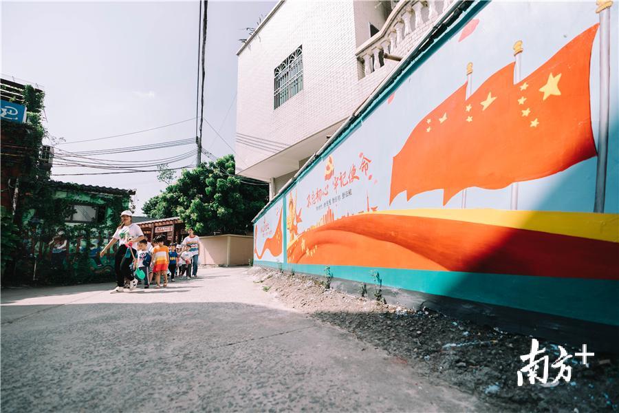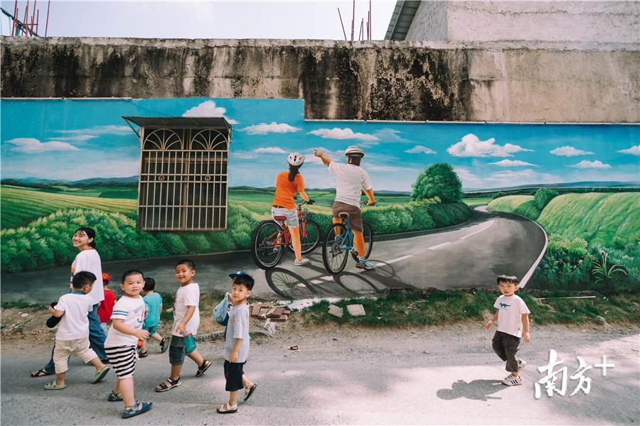 “我们每周四都会来观背村开展自然探索的课程,这里很安静,对小朋友来说也很安全。”记者到访观背村的当天上午,博罗一家亲子园的老师正领着一群孩子前来游学,带队老师陈女士告诉记者,“壁画经过翻新后色彩更鲜艳,艺术气息更浓烈,成语故事和二十四节气简直是现成的教材,很适合户外教学!”