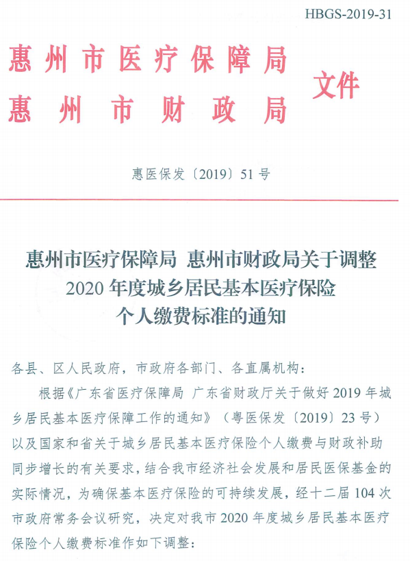 日前,惠州市医疗保障局和惠州市财政局联合印发《关于调整2020年度城乡居民基本医疗保险个人缴费标准的通知》(下称《通知》)。根据《通知》,从2020年开始,惠州城乡居民医保个人缴费标准从每人每年270元,提高到每人每年285元。