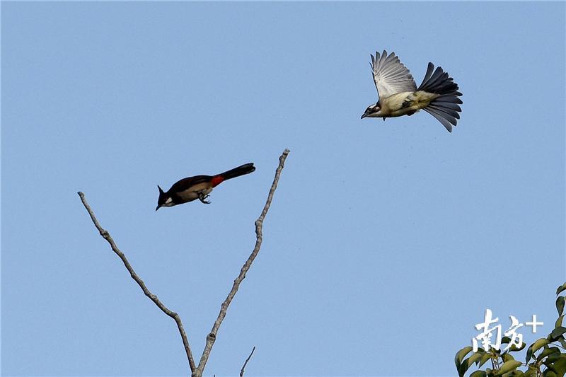 除此之外,池鹭、白头鹎、红耳鹎、乌鸫等也是重要“嘉宾”,白云、蓝天、绿树和这些鸟儿嬉闹的身影在镜面般的湖水倒映,耳边则尽是它们的窃窃私语,一同构成了这场鸟类盛会的风景线。