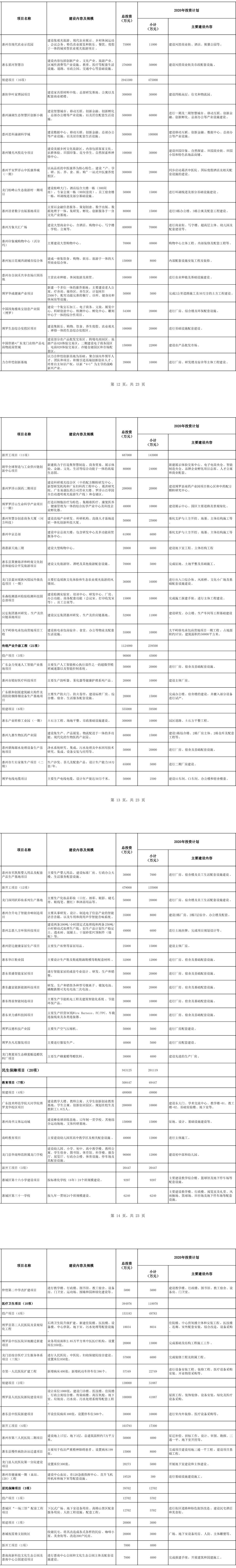 附:惠州市2020年重点建设项目计划