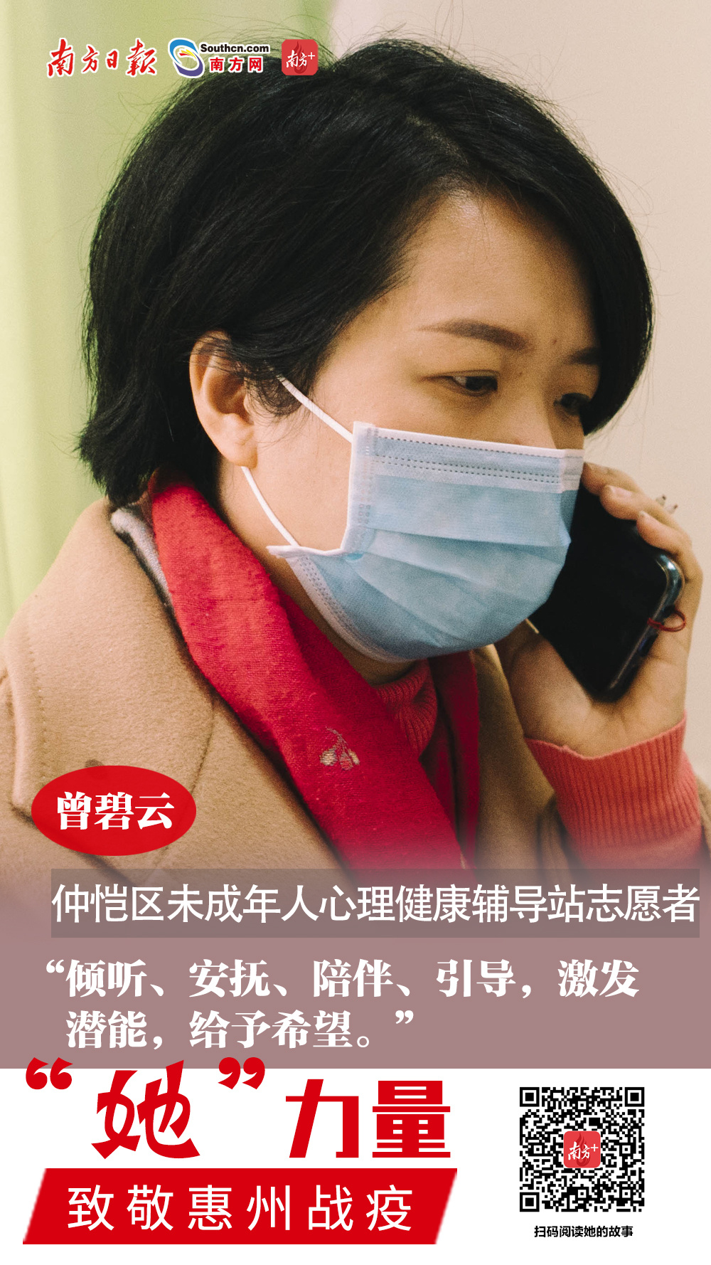曾碧云是惠州仲恺高新区未成年人心理健康辅导站志愿者,也是一位有着多年经验的心理咨询师。大年初一,她获知很多高校教师在组织心理咨询师为面对疫情的焦虑人群做心理疏导,便报名参加。