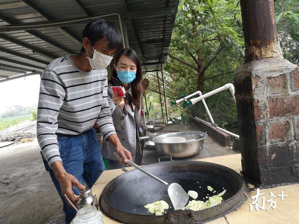 直播现场,就着新鲜采摘的番石榴,邹泽安还示范了番石榴炒菜的做法,把番石榴切成薄片,配以最简单的佐料,大火翻炒1—2分钟,喷香的菜肴就出锅了。
