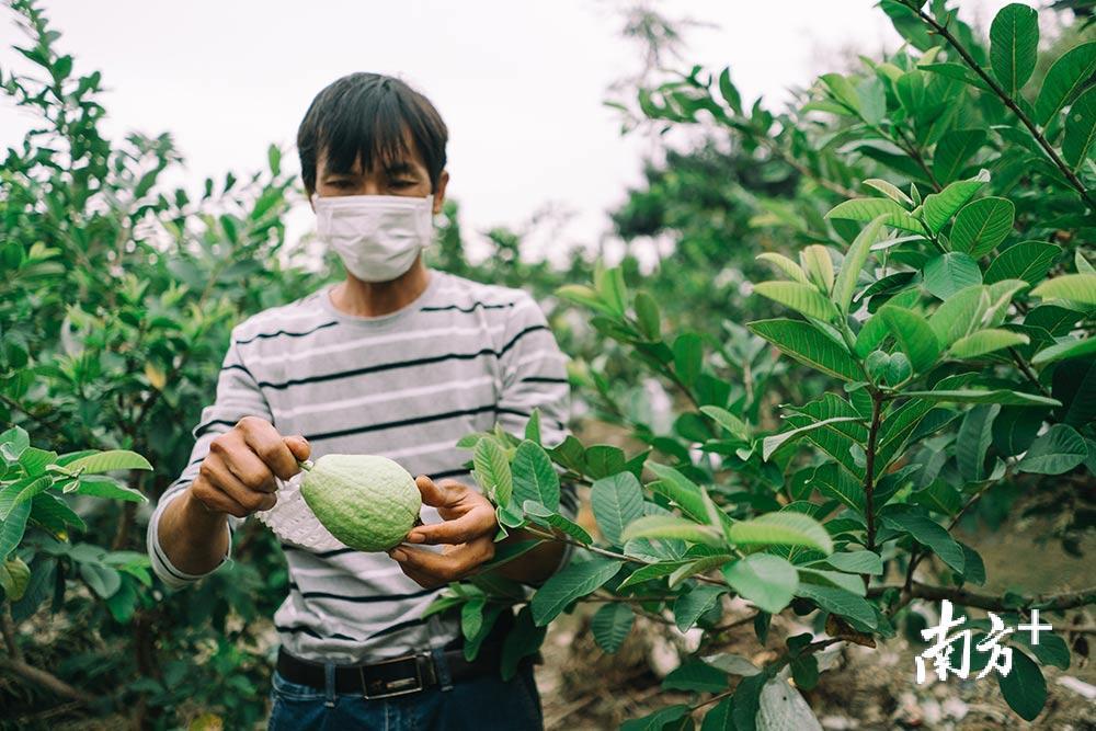 原本,农业种植并不是邹泽安所擅长,从事了20年跑船、货运工作的他,2017年回到家乡,接手130亩荒地种植水果、蔬菜,还带动周边农户参与,“番石榴采用的是有机种植模式,要聘请大量工人日常管理,挂果以后,为减少病虫害,还要给果实一个个套袋,费时费力。”