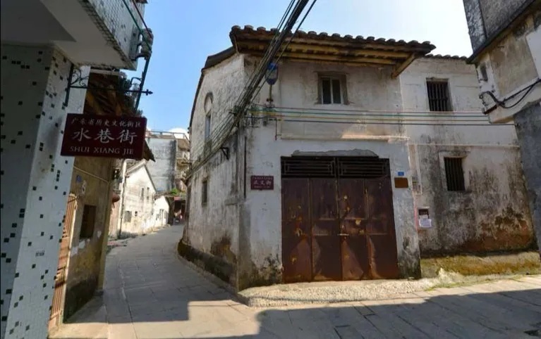 水东街一带的骑楼建筑有着岭南特有的文化风情,构造极为讲究,绝大部分是一楼一顶,各式西洋屋顶壁面后,是传统中式“金”字形瓦顶。连片而建的骑楼和竹筒楼建筑,既有岭南建筑文化特色,又融合了西方建筑元素。