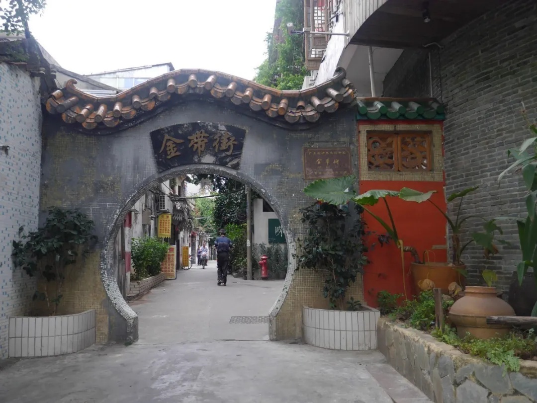 据史料记载,明清时期,有不少文人雅士居住于金带街,同时还是各地应试考生聚集之地,街上设有张家祠、姚家祠、何家祠、古家祠、卢家祠、杨家祠、廖氏家祠等,专供参加考试的书生住宿备考之用。与此同时,专为考试提供书、笔墨等文具的街道也应运而生。民国时期,金带街仍有诸多大户人家在此居住,如张友仁、余道元等多位历史名人都曾在此生活居住。新中国成立后,金带街曾出现了由居委会创办的企业,因此形成一定的商业氛围。