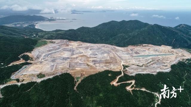 从惠州市区驱车向东南行驶约两个小时,便来到惠东县黄埠镇东头村附近。巍峨的大山顶上,有一个施工面积达81万平方米的“超级工程”。
