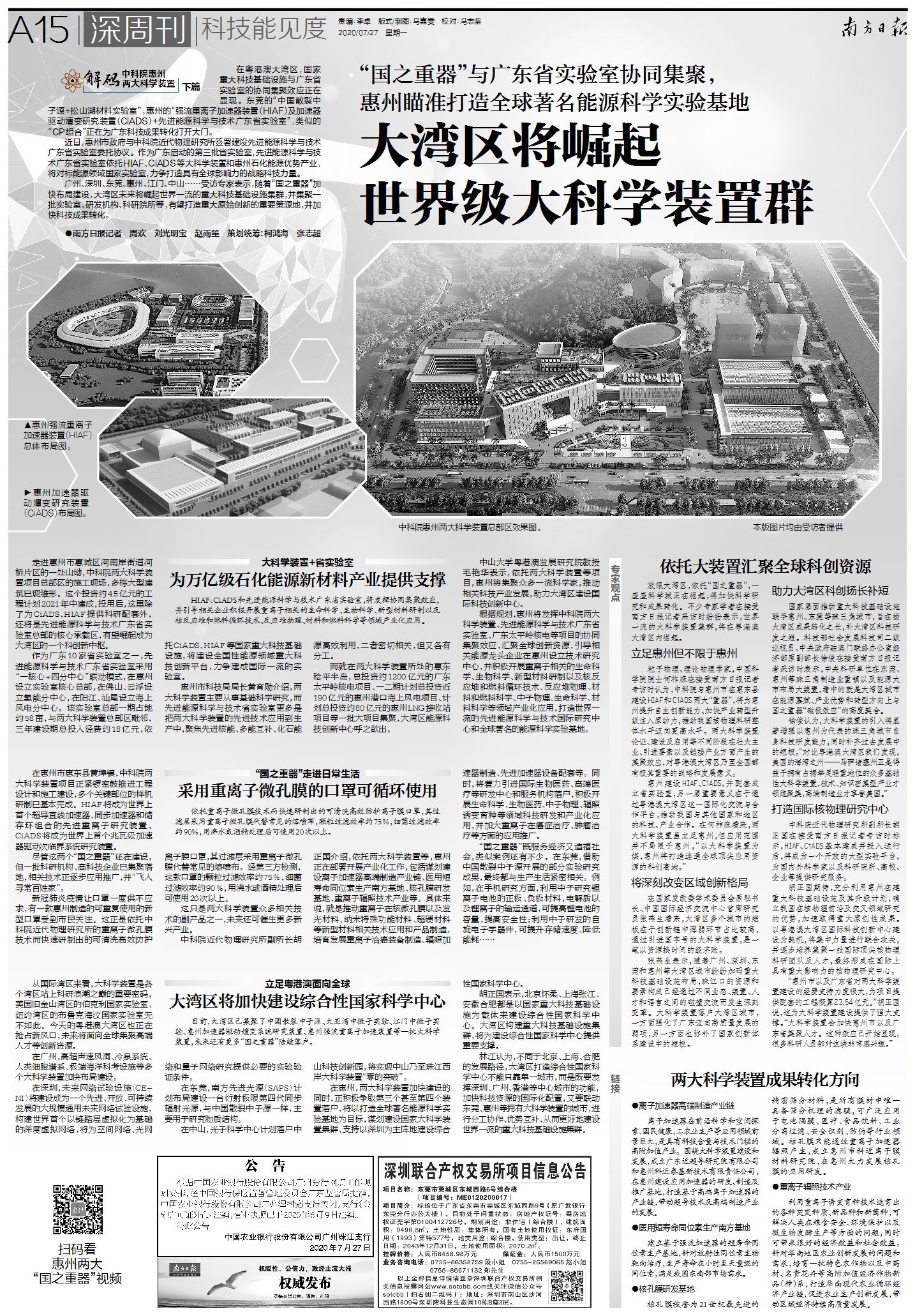 在惠州市惠城区河南岸街道河桥片区,中科院两大科学装置项目总部区的工地上多栋大型建筑已现雏形。这个投资约4.5亿元的工程正加快建设,计划2021年中建成。这里除了为CiADS、HIAF提供科研配套,还将是先进能源科学与技术广东省实验室总部的核心承载区。