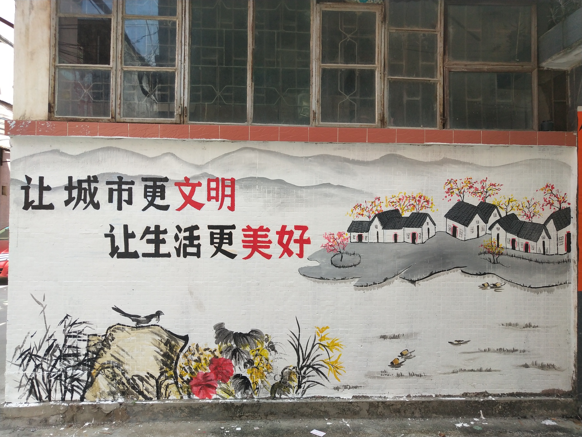 多彩墙绘赶走“城市牛皮癣”