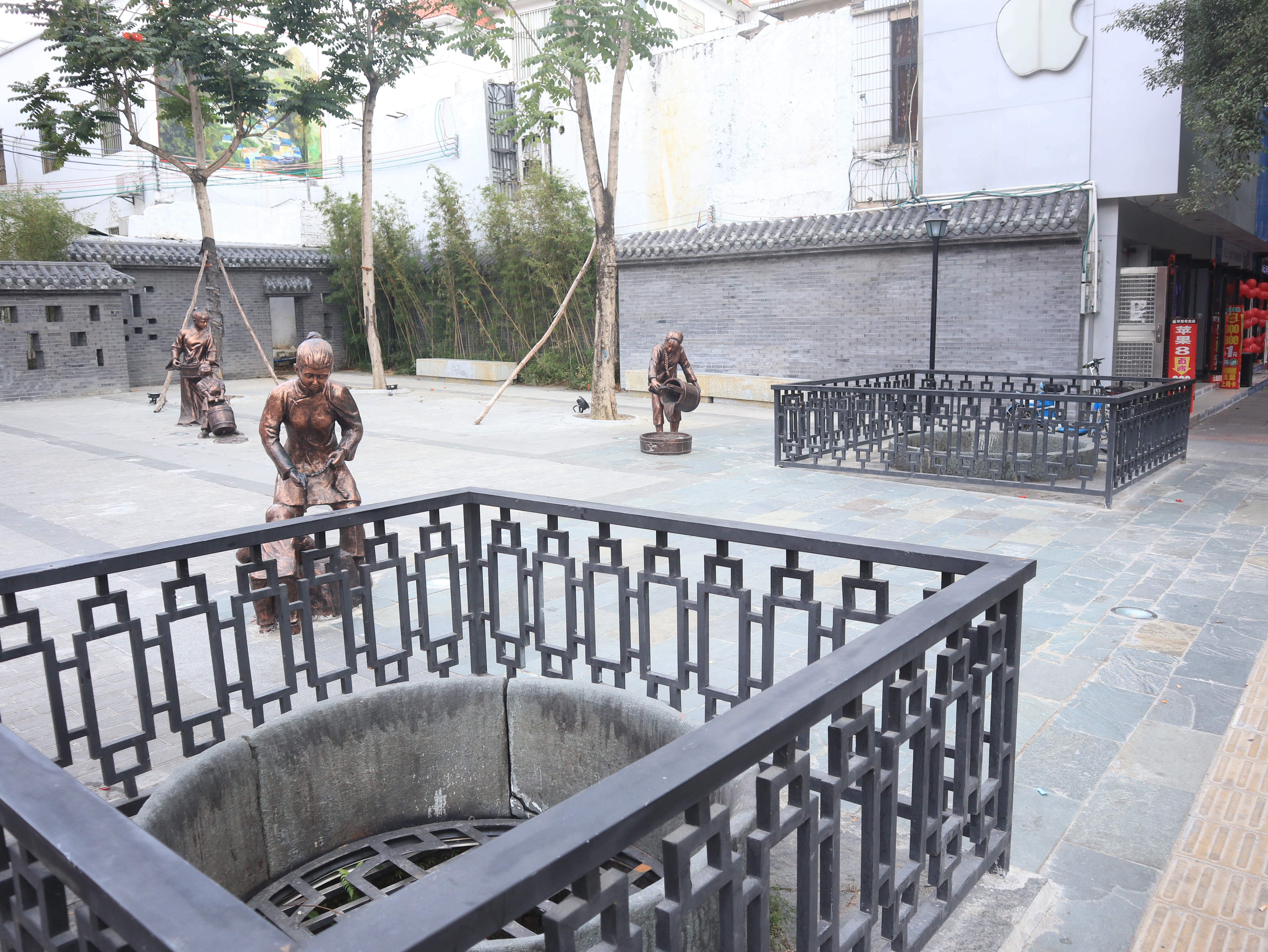 2018年前后,惠东对街尾井及周边环境进行重新改造。如今,这里已成为一处美丽宽敞的街头公园,绿植环绕的小广场中央,三个铜像雕塑栩栩如生,静默无言中诉说着历史。市民茶余饭后总会漫步于此,也是社区举办活动的重要场所。