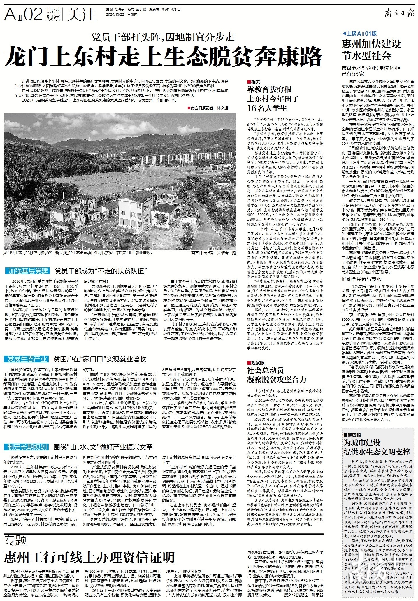 2020年,是脱贫攻坚决胜之年,上东村正在脱贫奔康的大道上昂首前行,成为惠州一个鲜活样本。