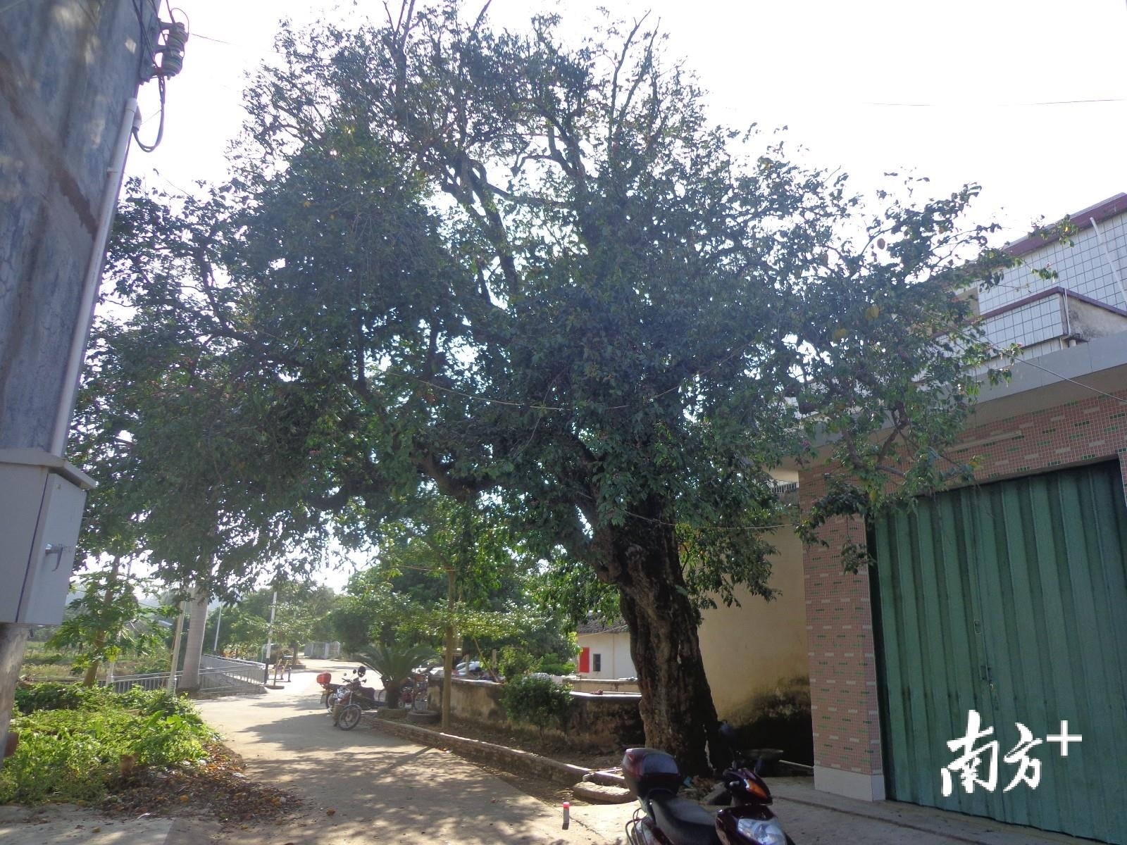 这株古荔枝树生长于明朝时期,树体郁郁葱葱,将房屋和村道遮挡得严严实实。据当地老人说,数百年来,村民与古荔树相伴成长,把古荔枝视为最珍贵的“传家宝”,不论什么时候,不论荔枝的价格多么便宜,村民从不遗弃它。