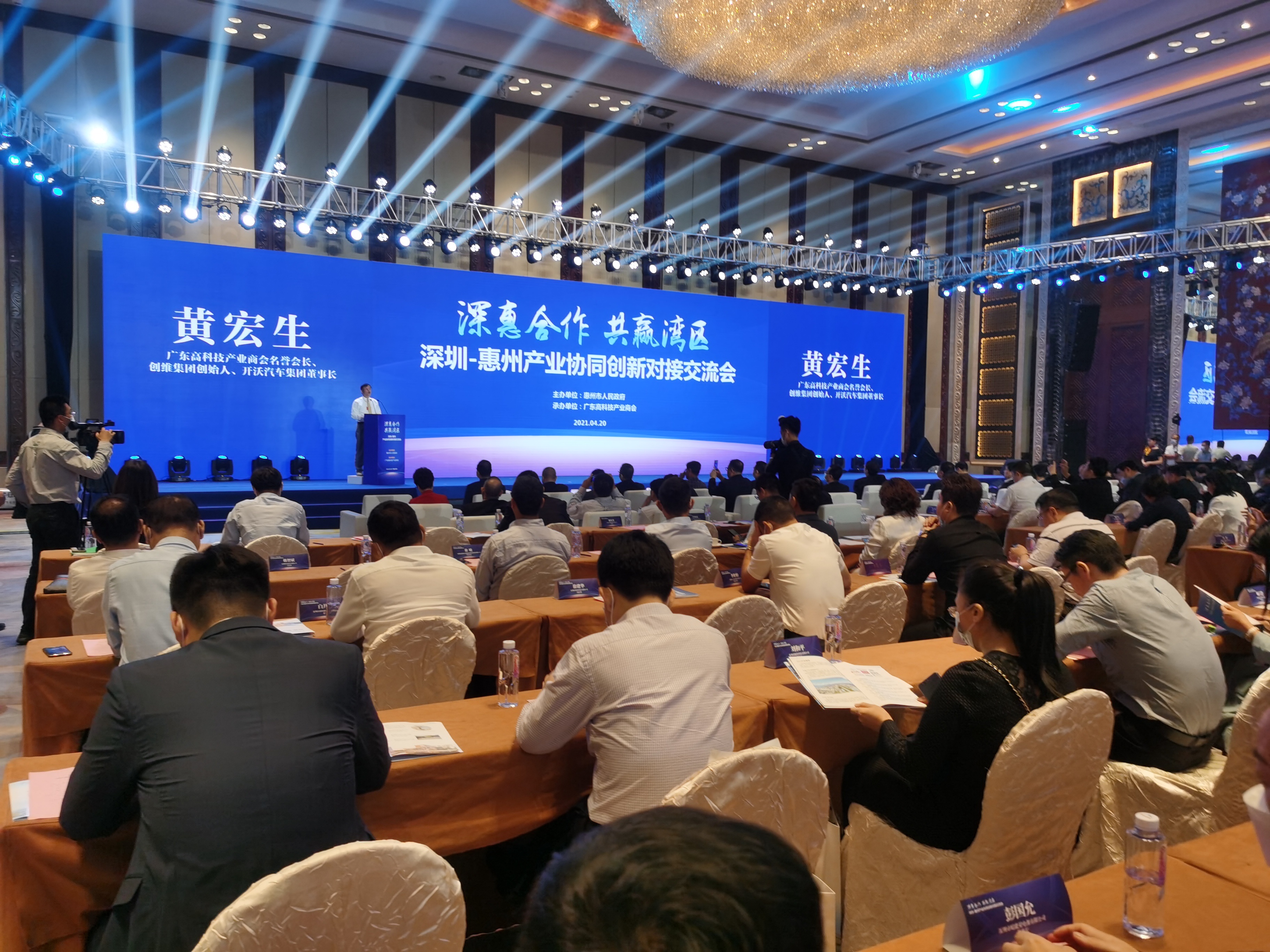 4月20日,深圳-惠州产业协同创新对接交流会在深圳市举行。此次活动由惠州市政府主办,广东高科技产业商会承办,来自粤港澳大湾区各大城市约300家科技行业龙头和知名企业参会。