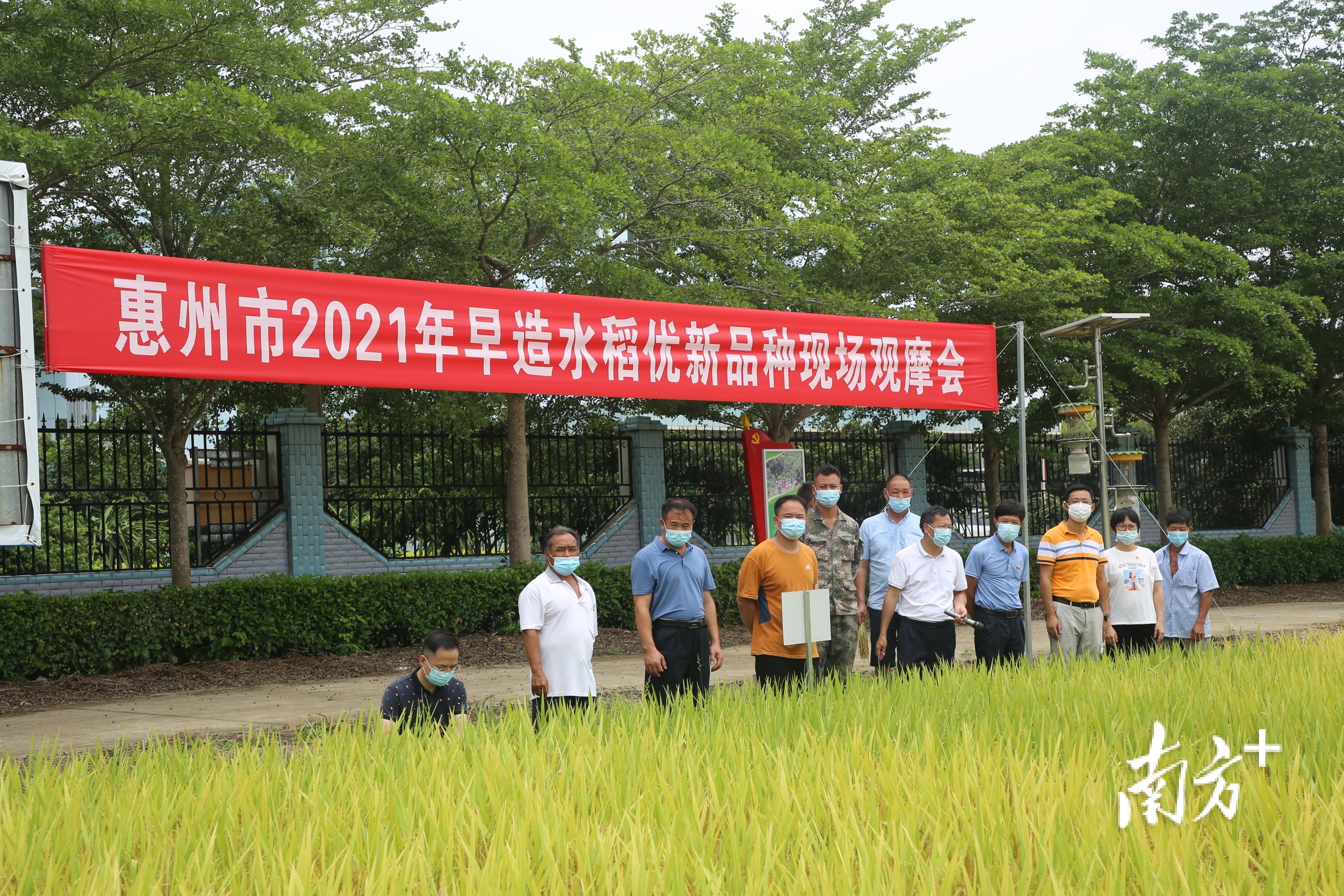 6月23日,在严格落实新冠疫情防控措施下,惠州市农业农村综合服务中心在惠阳区平潭镇早稻优新品种展示基地召开2021年全市早造水稻优新品种现场观摩会。