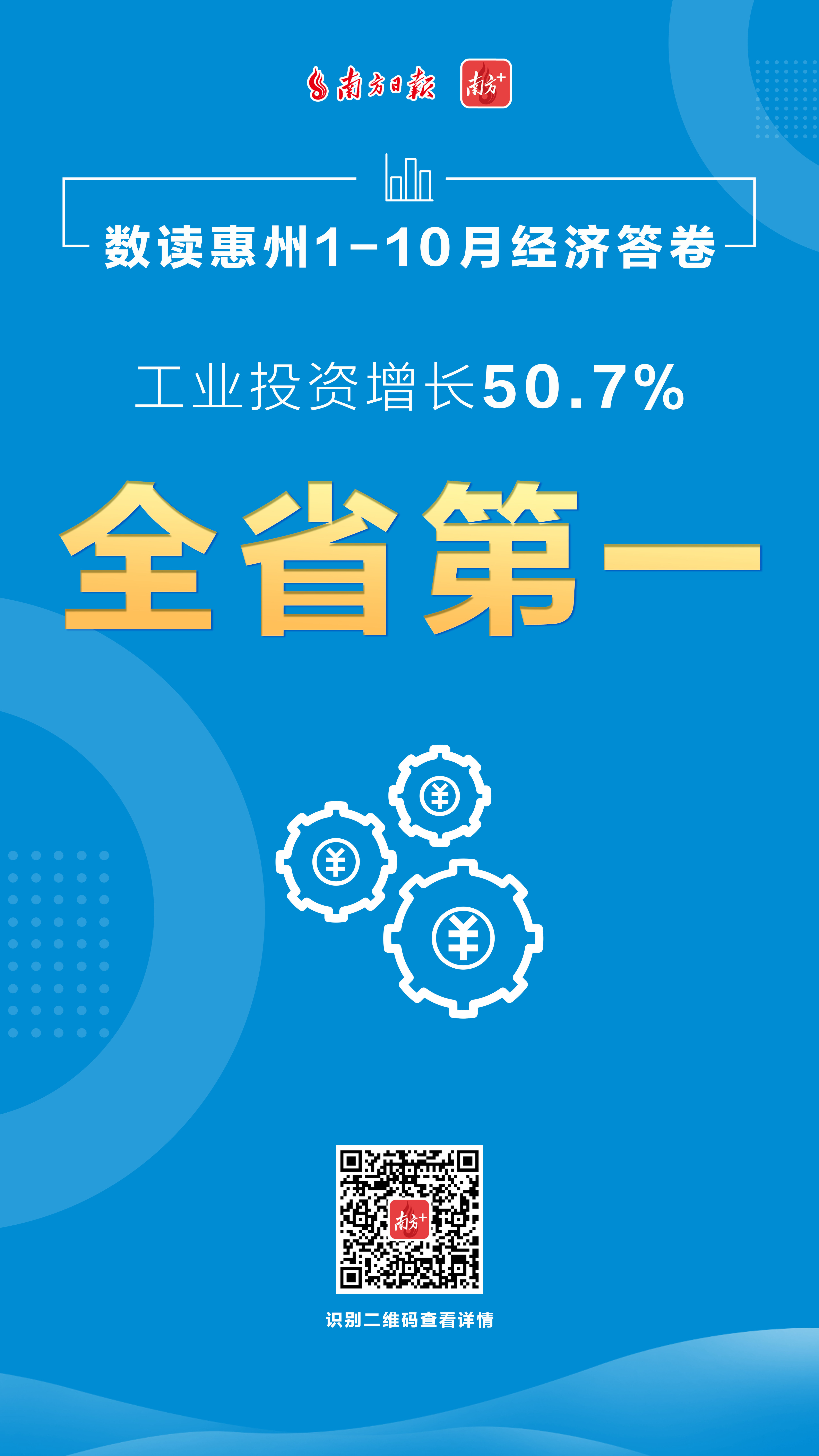 工业投资增速为50.7%,居全省第一;固定资产投资增速为24.9%,居全省第一……1-10月,惠州主要经济指标持续全面向好。