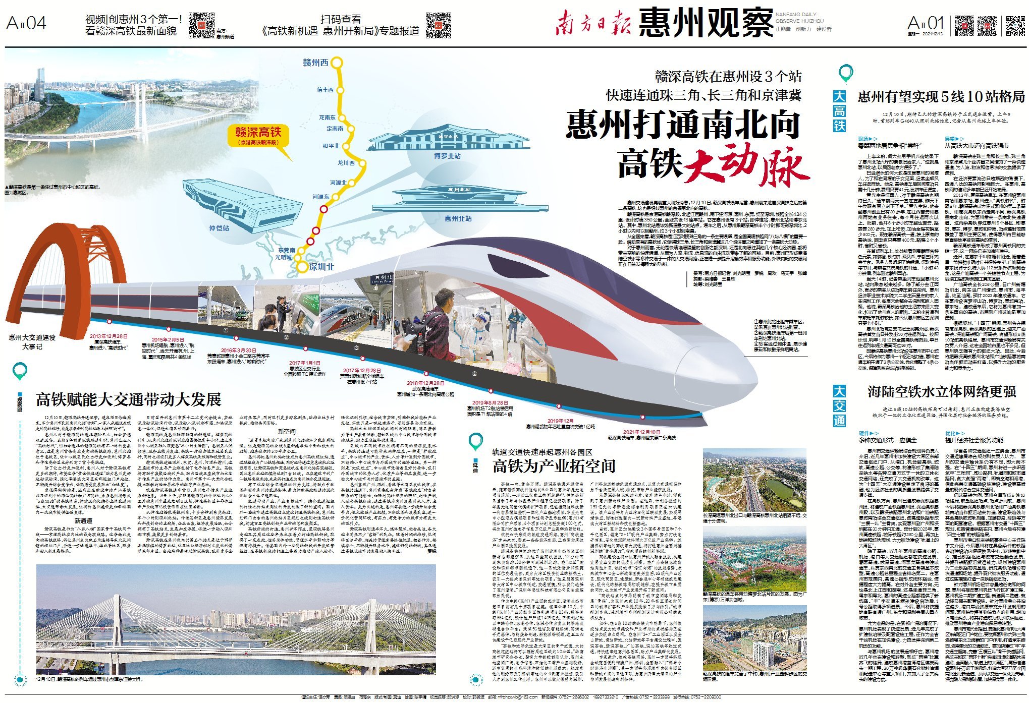 12月10日,期待已久的赣深高铁终于正式通车运营。上午9时,首班列车G4640从深圳北站始发,记者从惠州北站上车体验。