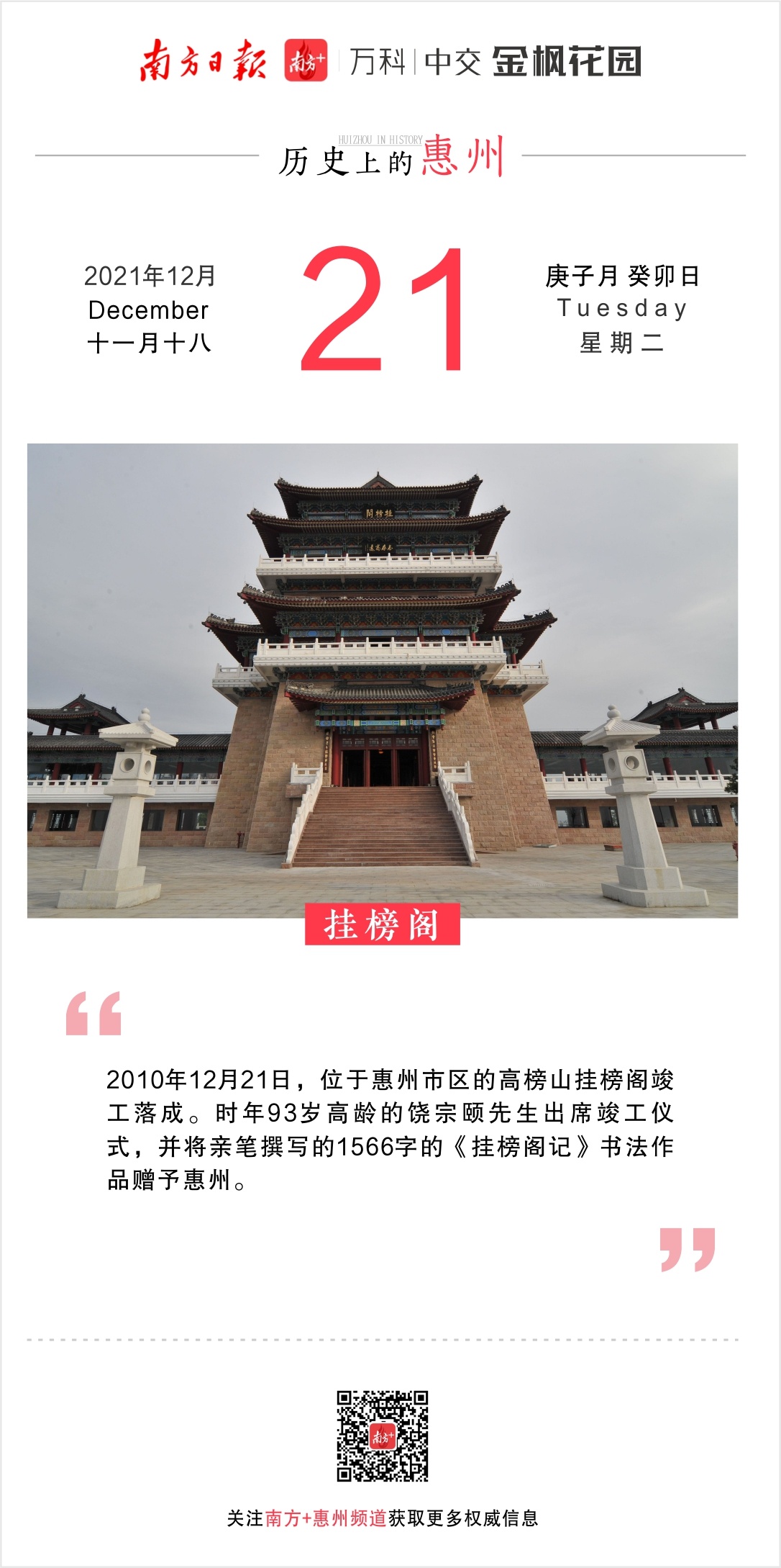 欢迎您如期打开《惠州日历海报》,一日一读间,带着时间追溯历史。