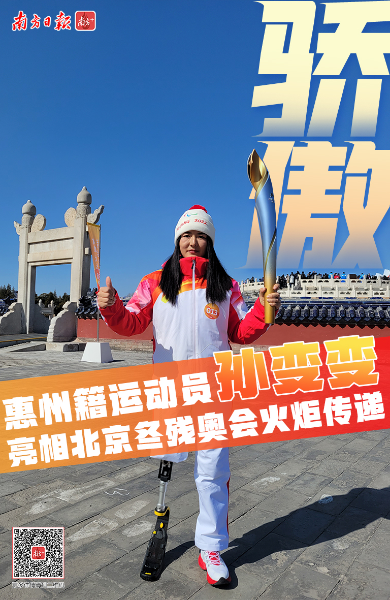 3月2日,北京冬残奥会火炬传递正式开启。当天下午,惠州籍公路自行车运动员孙变变作为013棒火炬手,参加了北京天坛公园圜丘段的火炬接力。