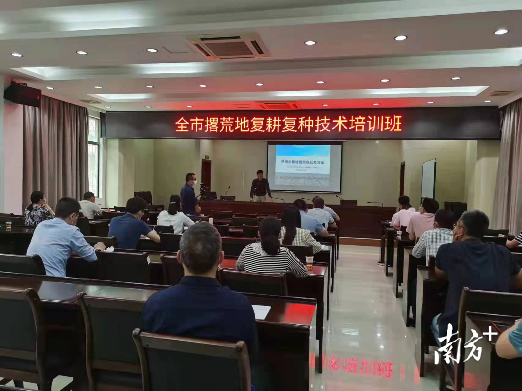 农时一天不耽误,农田一亩不撂荒。祝升直的建议得到了横沥镇的支持,并将这片耕地列为撂荒地复耕复种示范基地,组织开展了此次示范种植培训会。