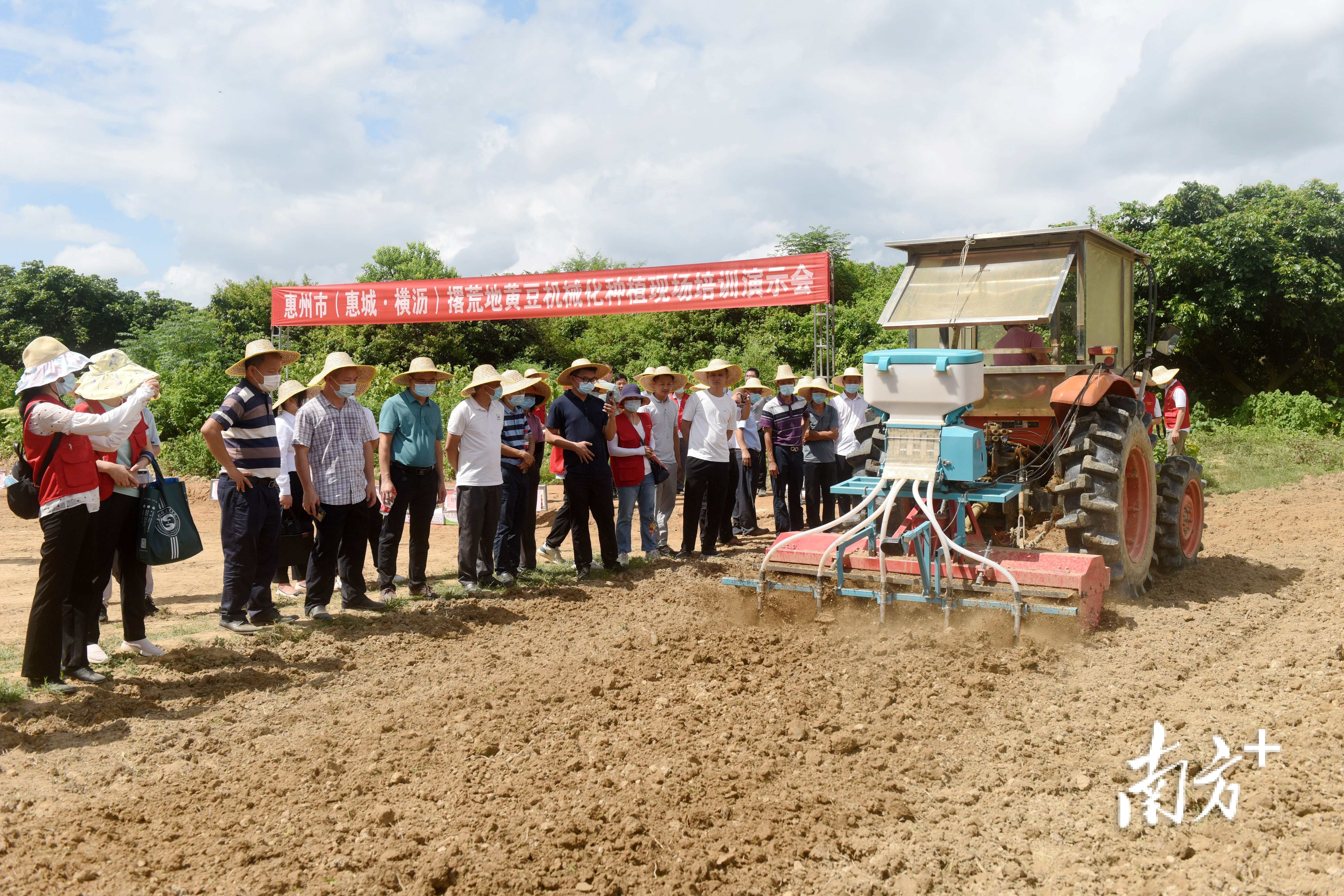 7月20日,惠州开展撂荒地黄豆机械化种植培训演示会召开,吸引了许多种植大户前来观看学习。