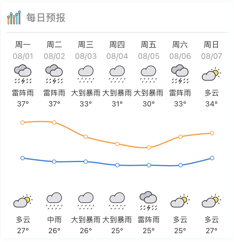 惠州市气象台预测,8月2日惠州高温炎热天气持续,午后有雷阵雨;3日-5日,有一次大雨到暴雨局部大暴雨降水过程,过程累积雨量60~100毫米局部150毫米以上,并伴有短时强降水、6~8级局地10级雷暴大风和局地冰雹等强对流天气,高温天气缓解;展望6日-7日,雨势减弱。