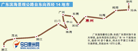 据了解,广东滨海景观公路以广州为界分成两段,第一段包括广州、中山、珠海、江门、阳江、茂名、湛江,全长约1173.8公里(含支线约185.1公里);第二段包括东莞、深圳、惠州、汕尾、汕头、揭阳、潮州段,全长约700.7公里(含支线119.5公里)。其中茂名段、阳江段、汕头段、揭阳段、中山段已由地方政府部门组织开展踏勘或工程可行性研究等前期工作,其他地市路段尚未开展前期工作。