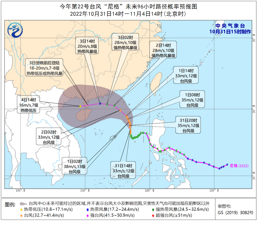 10月31日14时,今年第22号台风“尼格”(台风级)中心位于距离惠州市惠东港口南偏东方向约670公里的南海海面上,中心附近最大风力12级(33米/秒)。