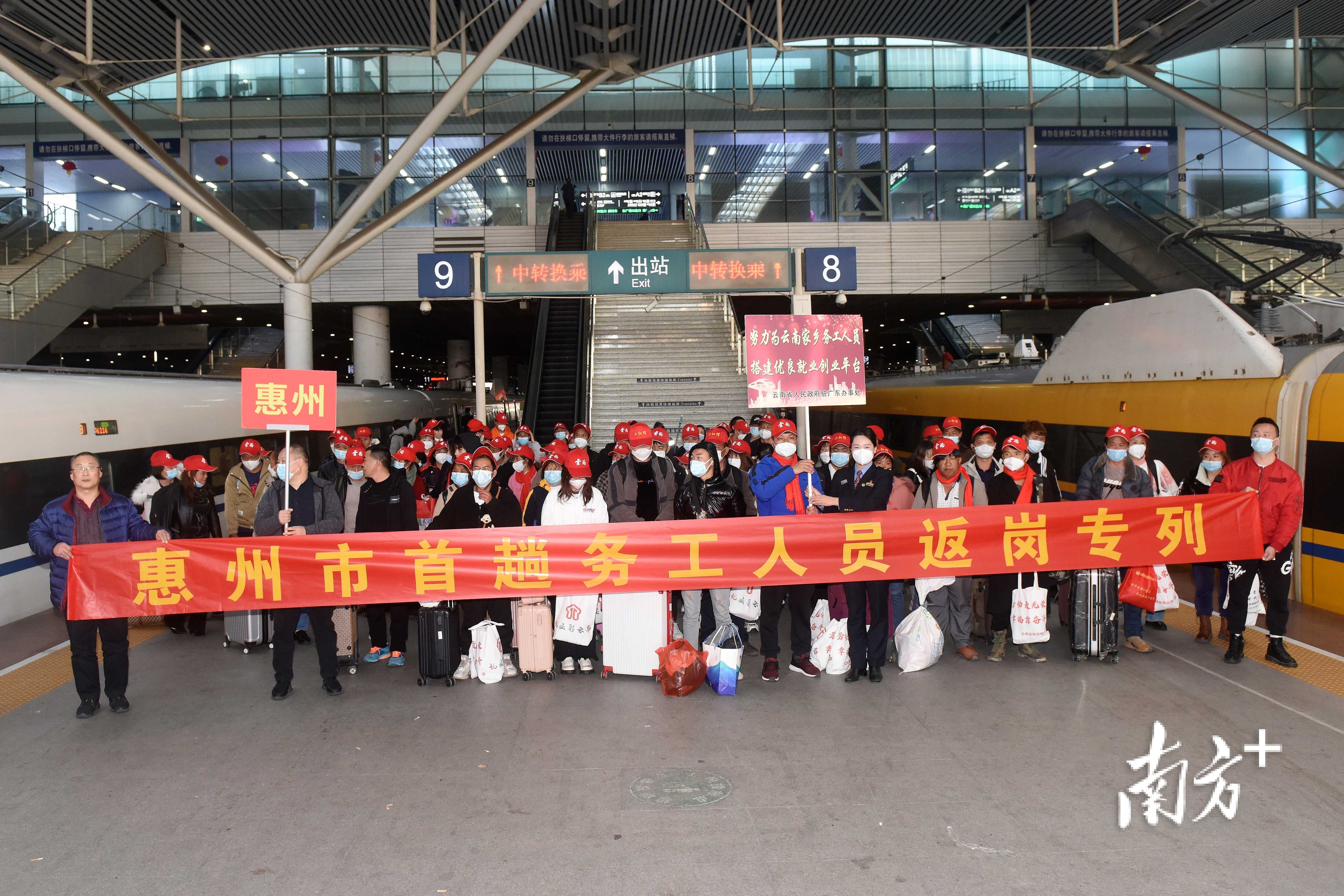 1月30日下午,一趟从昆明出发,搭载着300余名云南籍务工人员的“惠州号”专列G2924次顺利抵达深圳北站,这是今年惠州首趟务工人员返岗专列。务工人员出站后再坐上等候多时的大巴,无缝衔接至工厂门口。