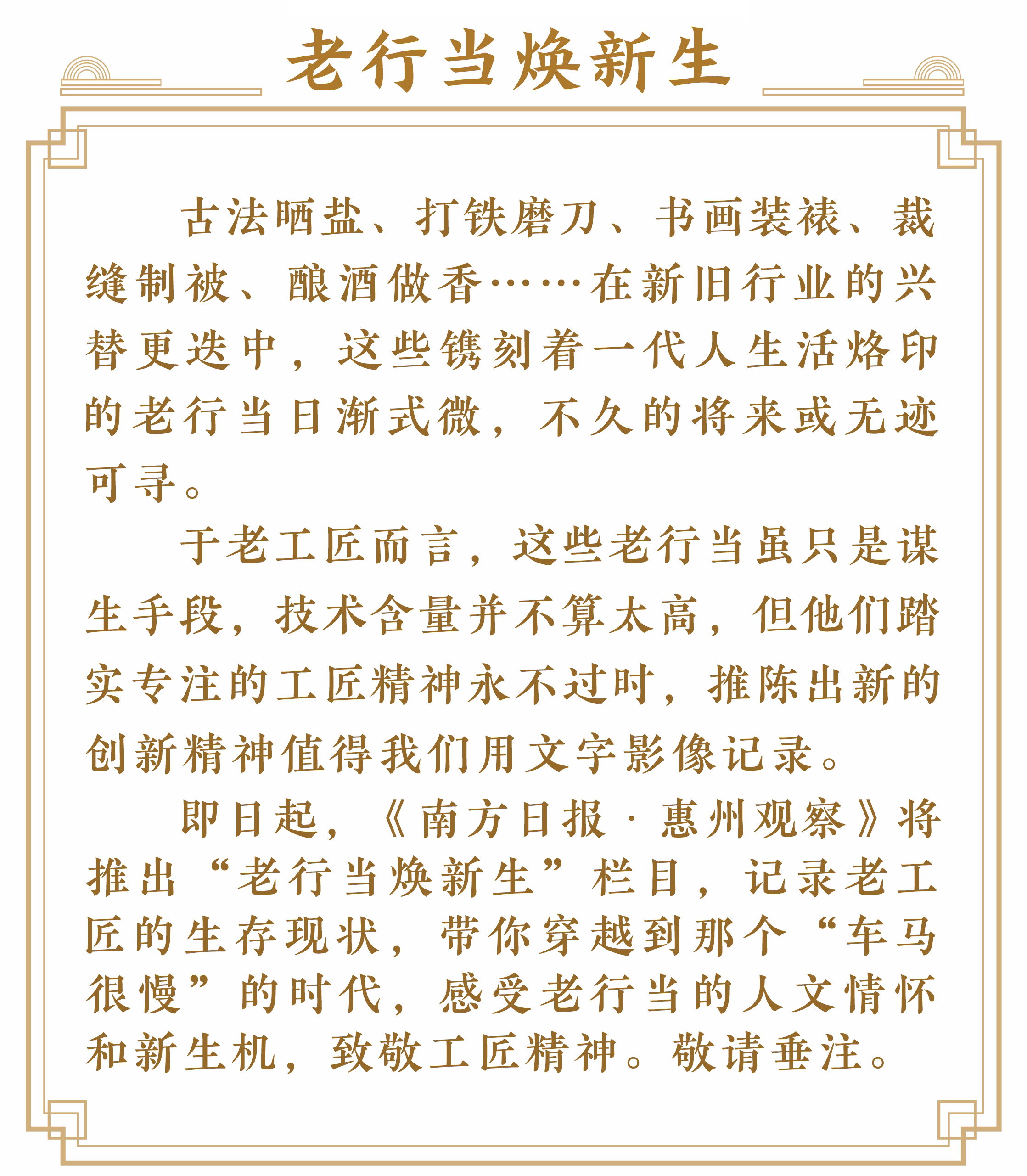 放眼惠州,像这样传统的打铁铺屈指可数。不少来自“铁匠之乡”梅州市五华县的铁匠们,在惠州城中村开起了打铁铺,他们主动转型,不再打农具,而是改为加工建筑工具,在城市觅得一方生存空间。