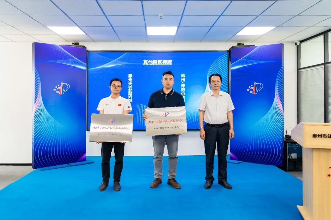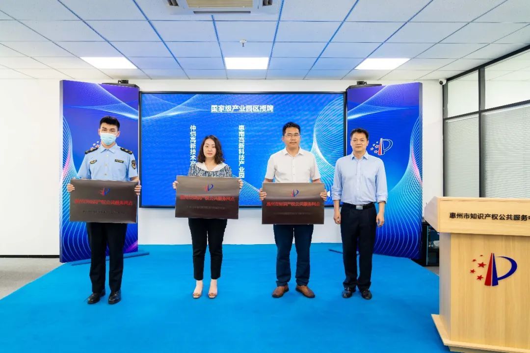 在活动过程中,惠州市知识产权公共服务中心还为仲恺高新技术产业开发区、惠南高新科技产业园、东江高新科技产业园3个国家级产业园区,惠城高新科技产业园、惠阳(象岭)智慧科技产业园、惠州新材料产业园等7个千亿级产业园区,以及天安数码城、仲恺中集智谷2个园区代表授牌,实现了市知识产权公共服务网点全市县区和千亿园区全覆盖,赋能园区知识产权创新服务。