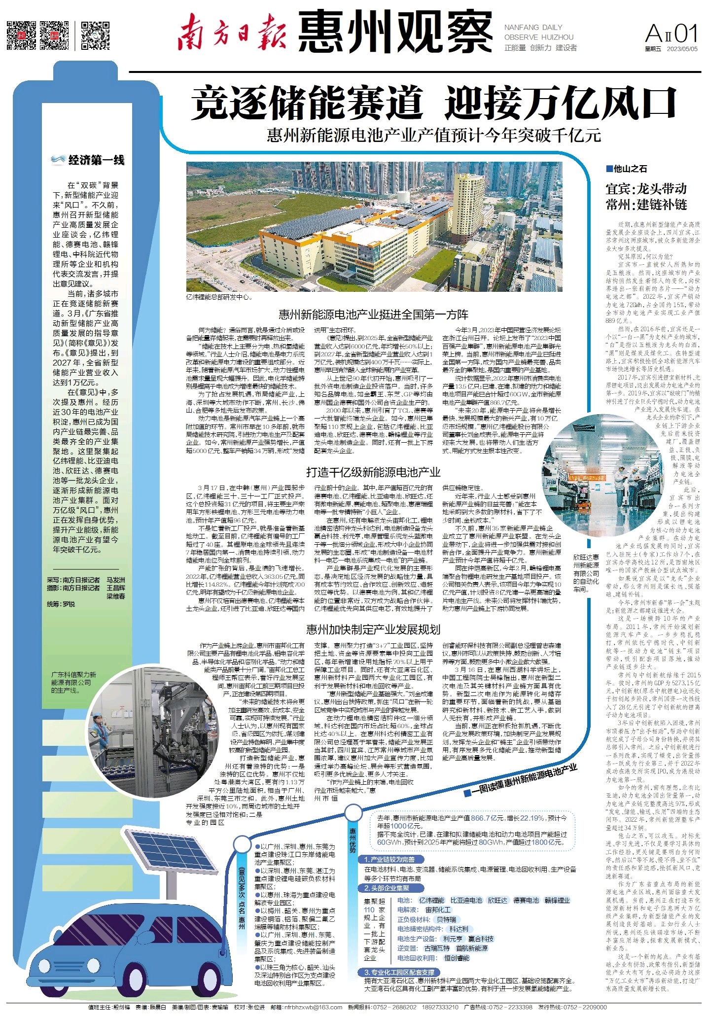 近年来,行业人士感受到惠州新能源产业链的日益完善:“能在本地采购到大多数的原材料,省下了不少时间、金钱成本。”