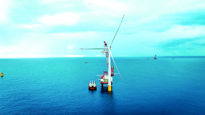 6月11日上午10时,随着3号风机的最后一支叶片与轮毂顺利对接,中广核惠州港口海上风电场二期项目首台风机顺利完成吊装。这意味着该项目正式进入全面吊装阶段,吹响了今年底全容量并网攻坚战的冲锋号。