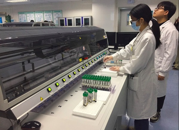 医务人员把血液样本放入机器后,设备即自动推入检验样本、自动分类到相关仪器分析、自动推出样本、自动扫描校验条码……