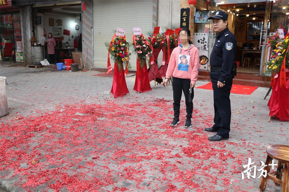 接报后,民警快速反应,立即赶赴现场,发现该商铺门前确实有燃放过爆竹留下的碎纸屑。经进一步询问、调查,该店主尧某对其非法燃放爆竹的违法行为供认不讳,交代了其经营的店铺今日开业,为图吉利,抱着侥幸心理在店铺前违规燃放了一串爆竹的事实。目前,乳源警方依法对尧某处以行政拘留处罚。