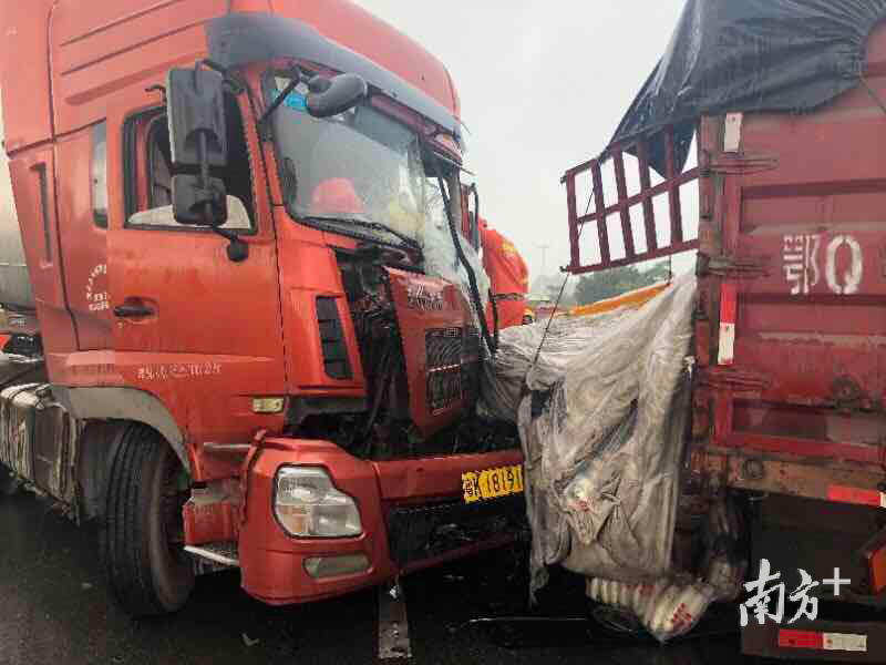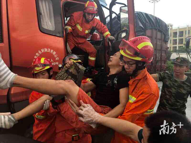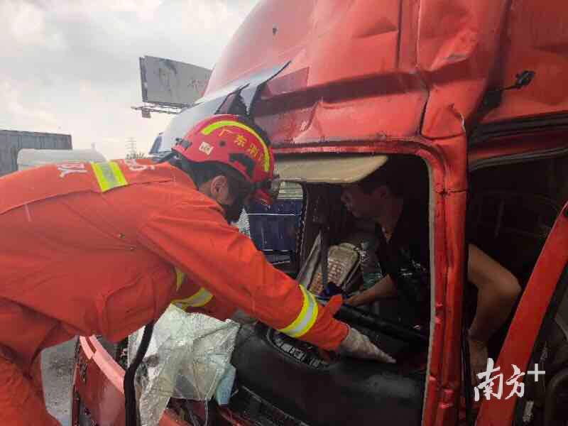 “大货车驾驶室撞得变形严重,司机双脚被卡住不能动弹,而且还是高速公路上。”7月26日8时50分许,麻涌消防大队接到市指挥中心调度命令,称位于沿江高速麻涌服务区广州往虎门方向发生一起大货车追尾的交通事故,车内有人员被困,情况危急。接到报警后,麻涌消防大队迅速出动3辆消防车和14名指战员赶赴现场处置。