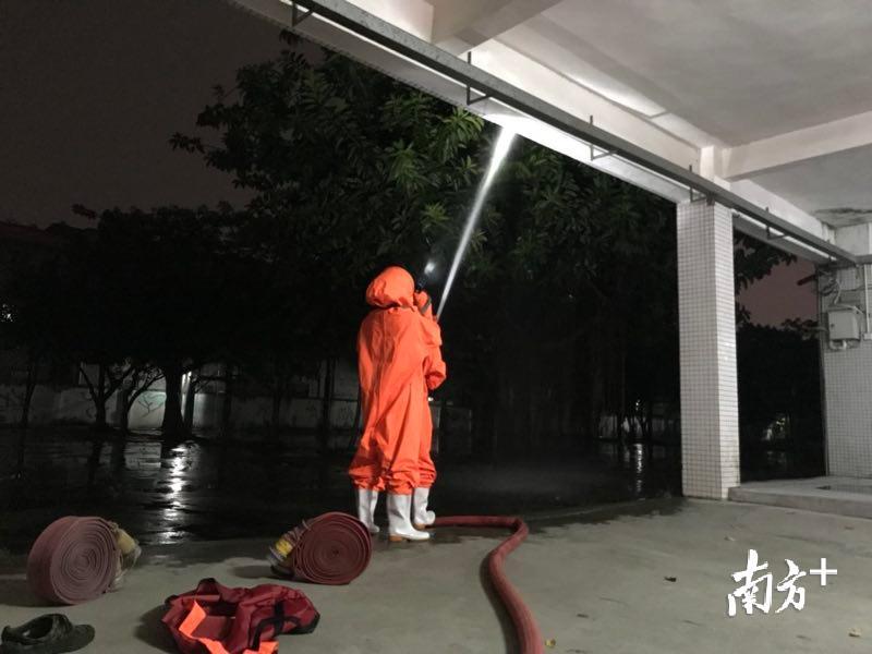 消防队员用水击落蜂窝,并观察了四周有没有漏网的马蜂,由于蜂窝刚筑巢,马蜂数量不多,因而没有余蜂在附近盘旋。消防员叮嘱工作人员要注意观察余蜂是否会再回来筑巢,如有情况及时跟消防队联系。