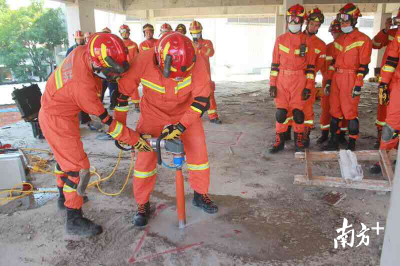 按照《东莞市消防支队地震救援预案》要求和现场情况,支队指挥部迅速下达作战命达,各救援小组按工作分工立即投入开展废墟搜救、狭小空间救援、高空救援、重物转移、楼板破拆和支撑等个科目。支队通过开展全流程全方位的专业训练,逐步培养专业技术骨干,为进一步发挥传帮带作用,大力增强队伍地震专业化救援能力奠定基础。