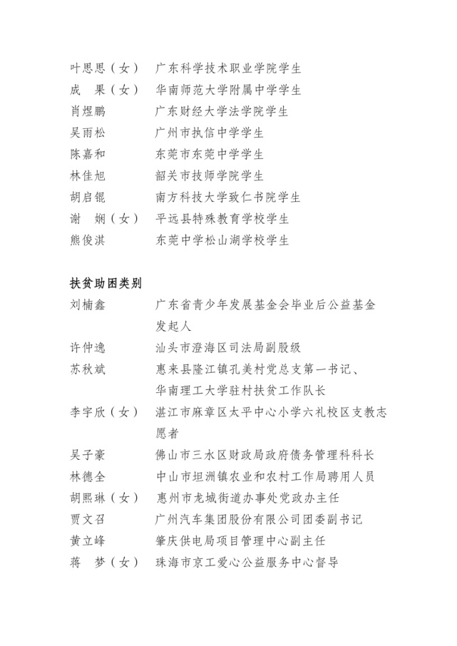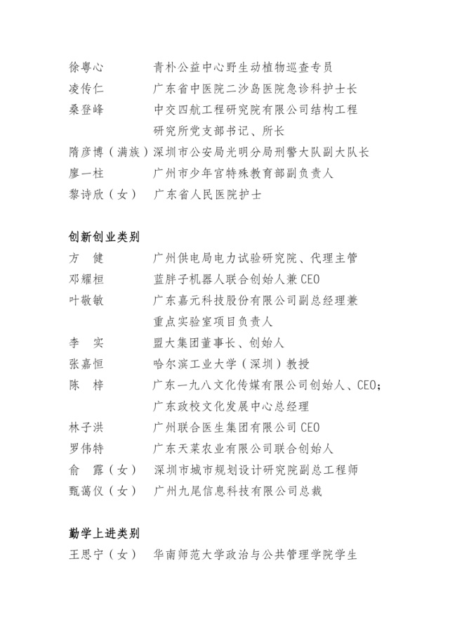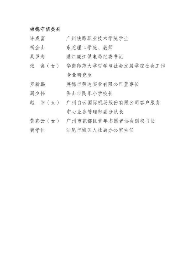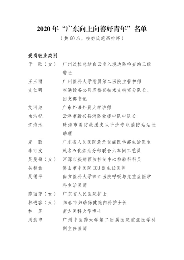 附本年度“广东向上向善好青年”名单